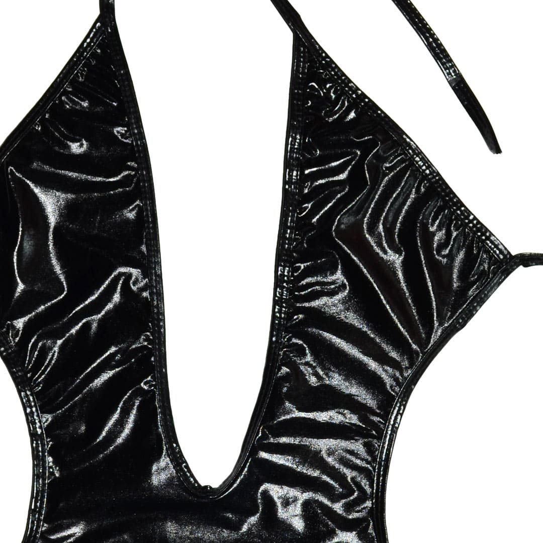 Блискучі боді-монокіні металік (з диско-трикотажу, біфлекс з напиленням) через шию на крест, перед з двох частин переходять у труси, зав'язується ззаду в ділянці грудей і на стегнах з боків, ззаду труси сліпами.