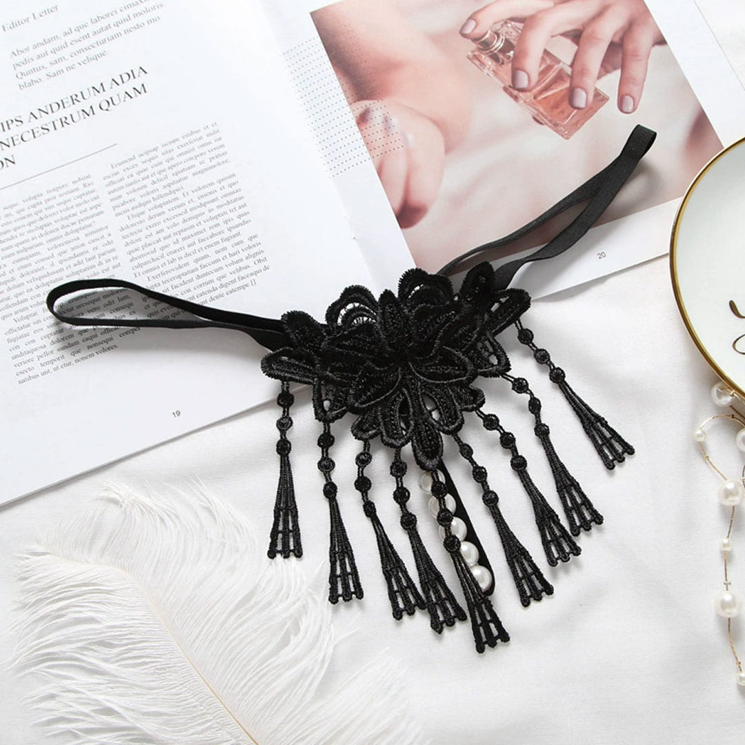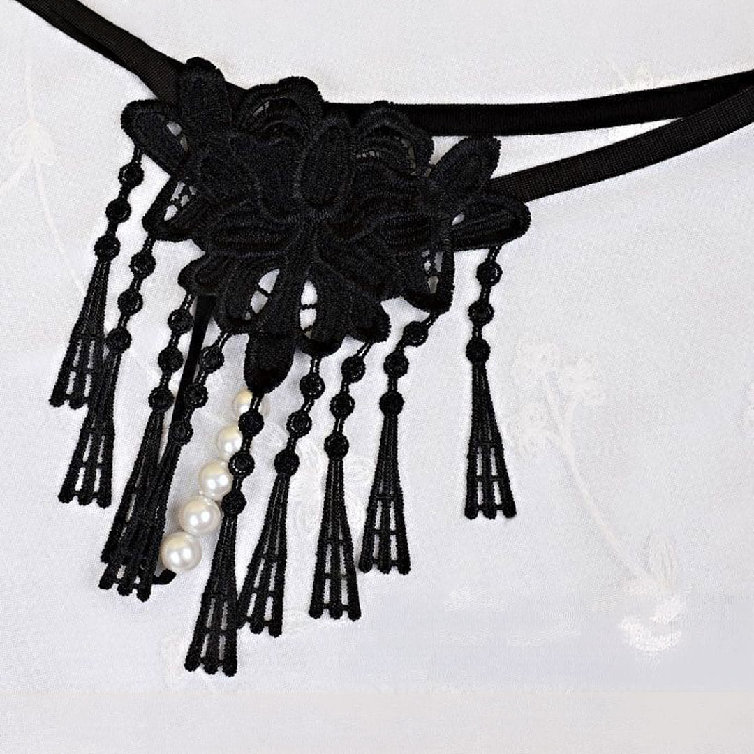 Вишукана модель з чорного мережива, виконаного у вигляді квітки, підкреслює жіночність та витонченість. Особливий акцент — перлинна нитка, що додає образу пікантності та чуттєвості.