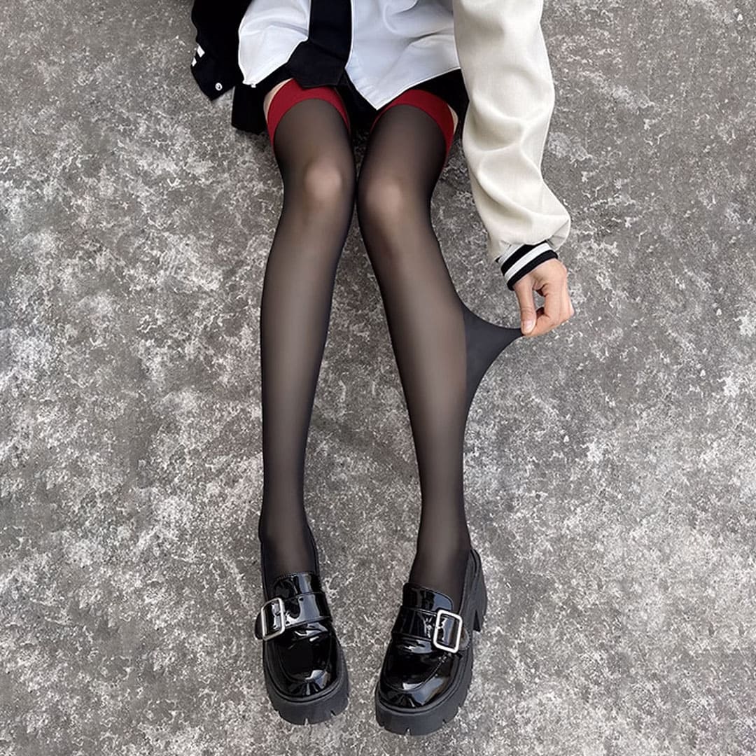 Чорні з бордовим шовковисті капронові панчохи під пояс на широкій резинці, невидимий мисок.