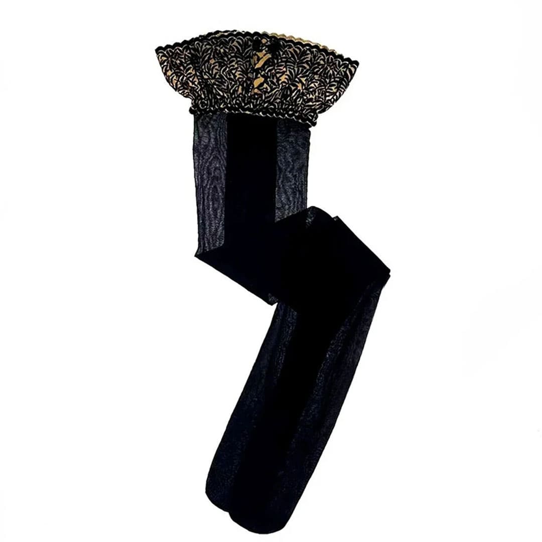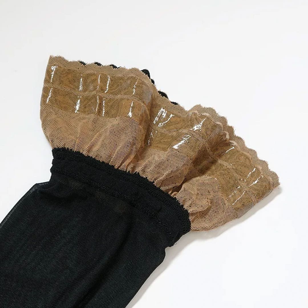 З внутрішньої сторони мережива розташовані силіконові смужки, що забезпечують надійну фіксацію без пояса — панчохи впевнено тримаються та комфортні у носінні.