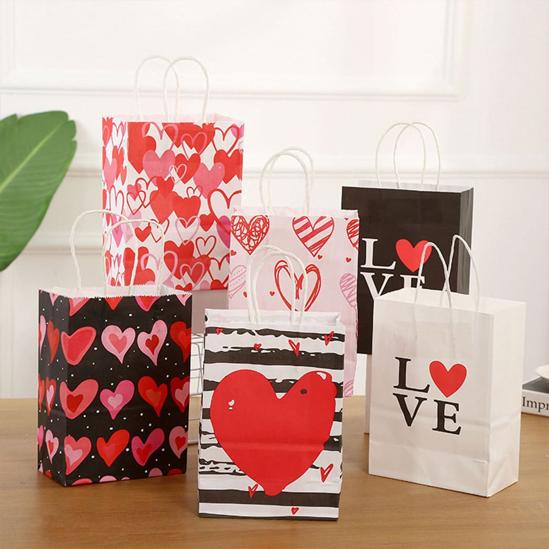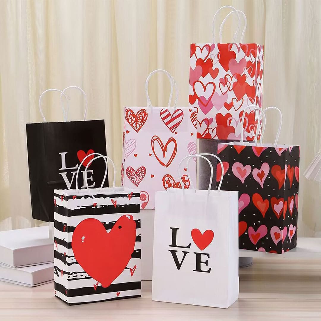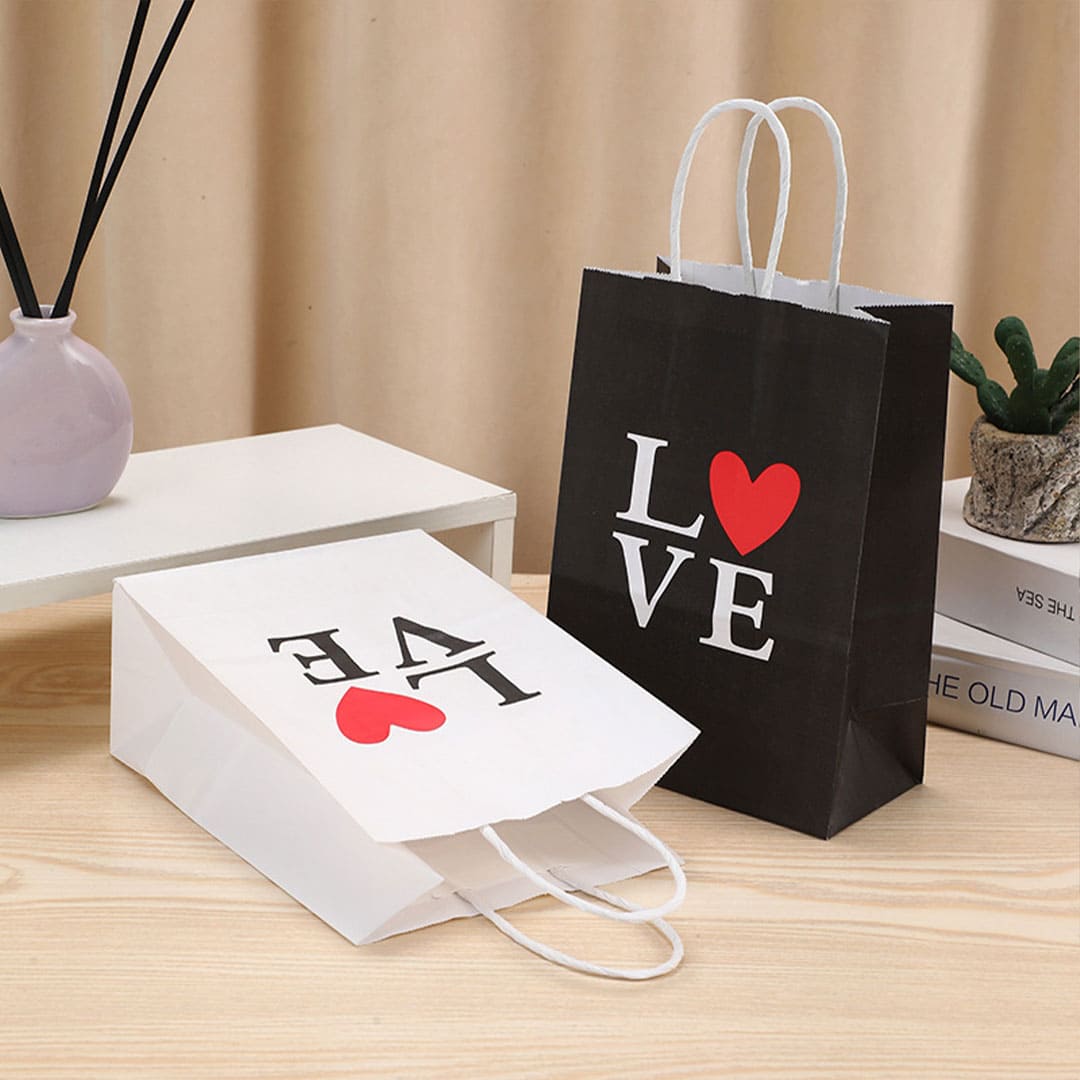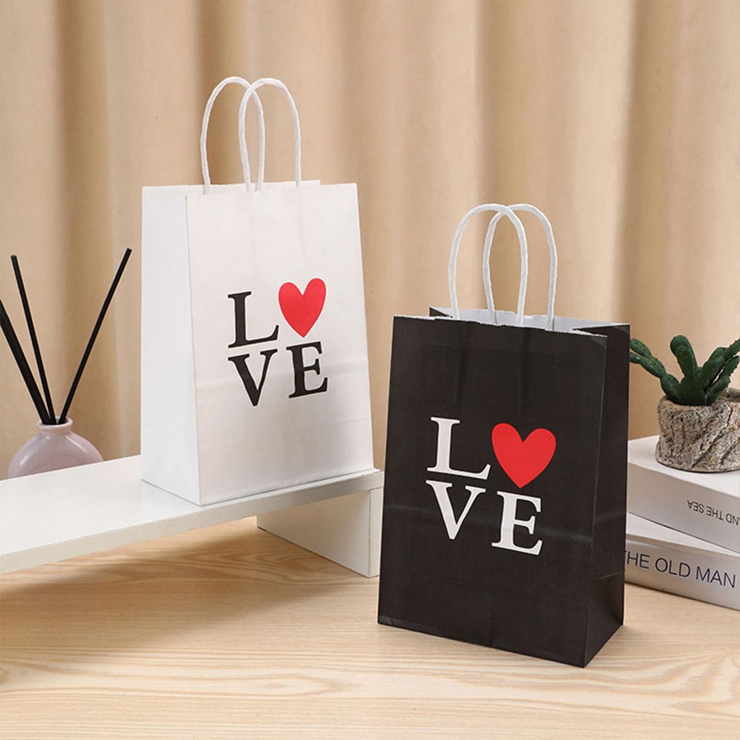 Чорний паперовий подарунковий пакет з написом "Love", білі виті паперові ручки та плоске дно.