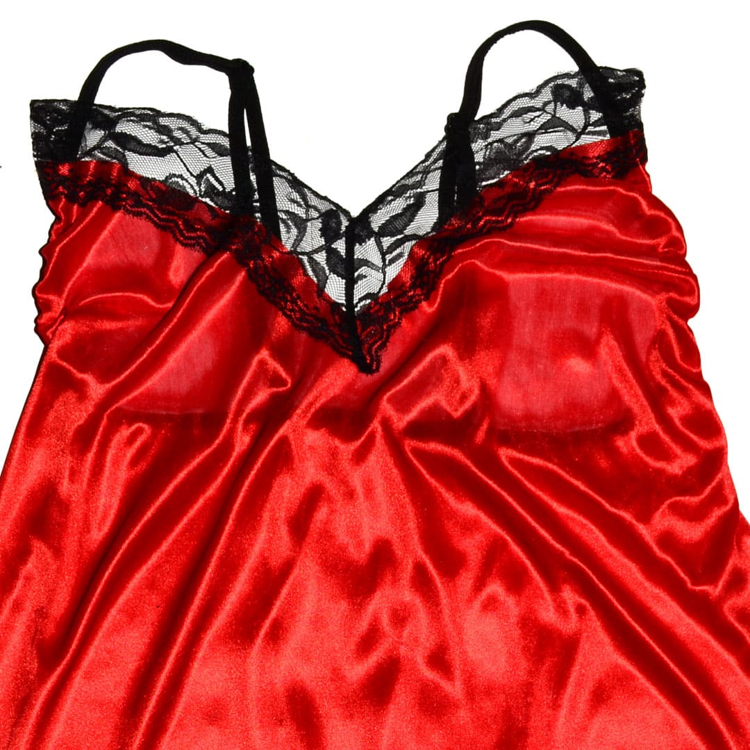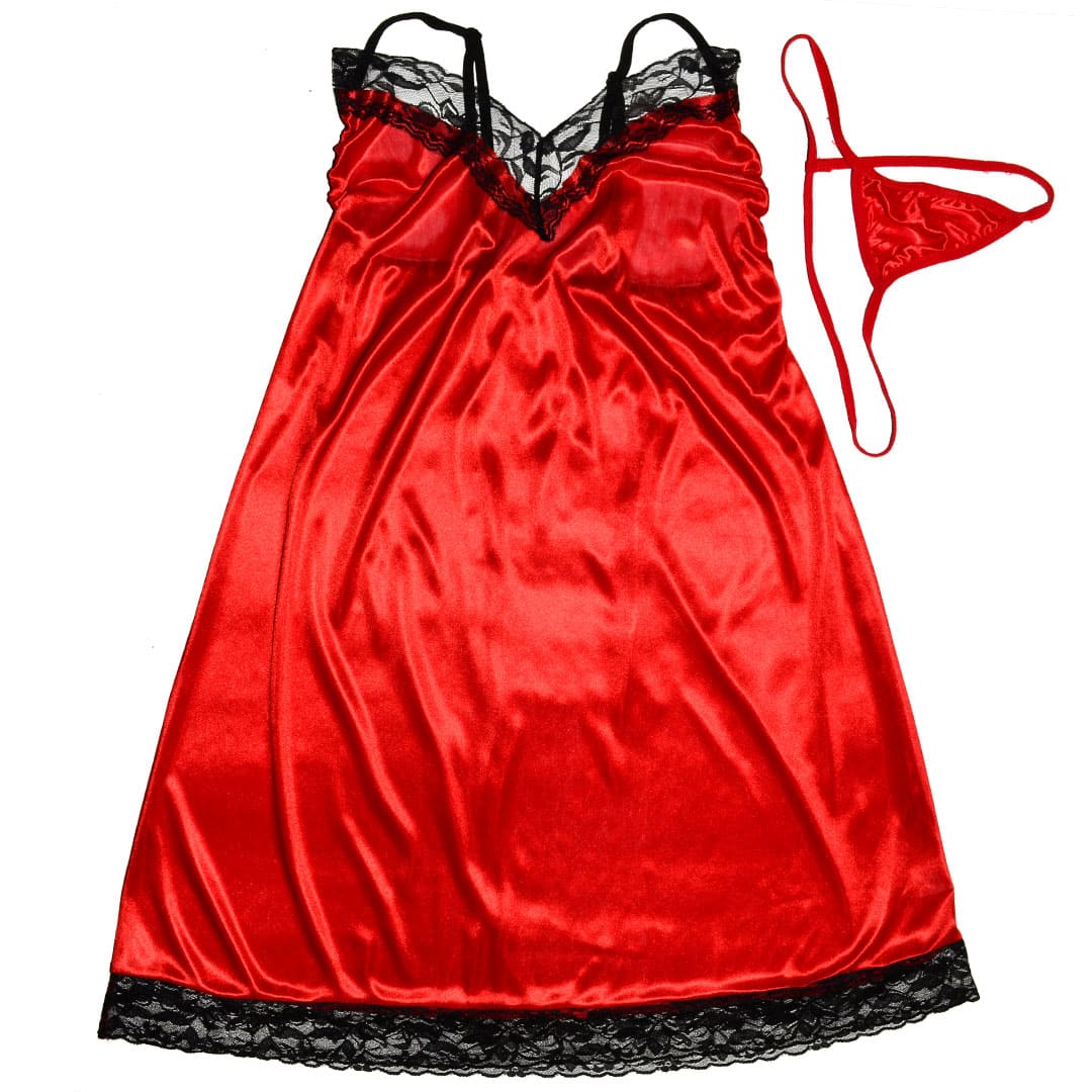 Червоний еротичний набір великого розміру (плюс-сайз): пеньюар і труси з блискучого матеріалу під атлас.