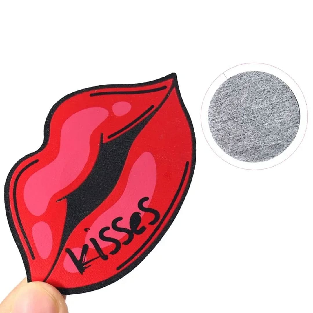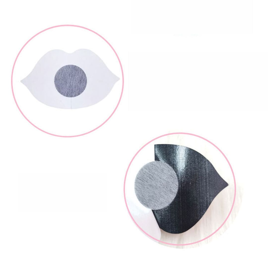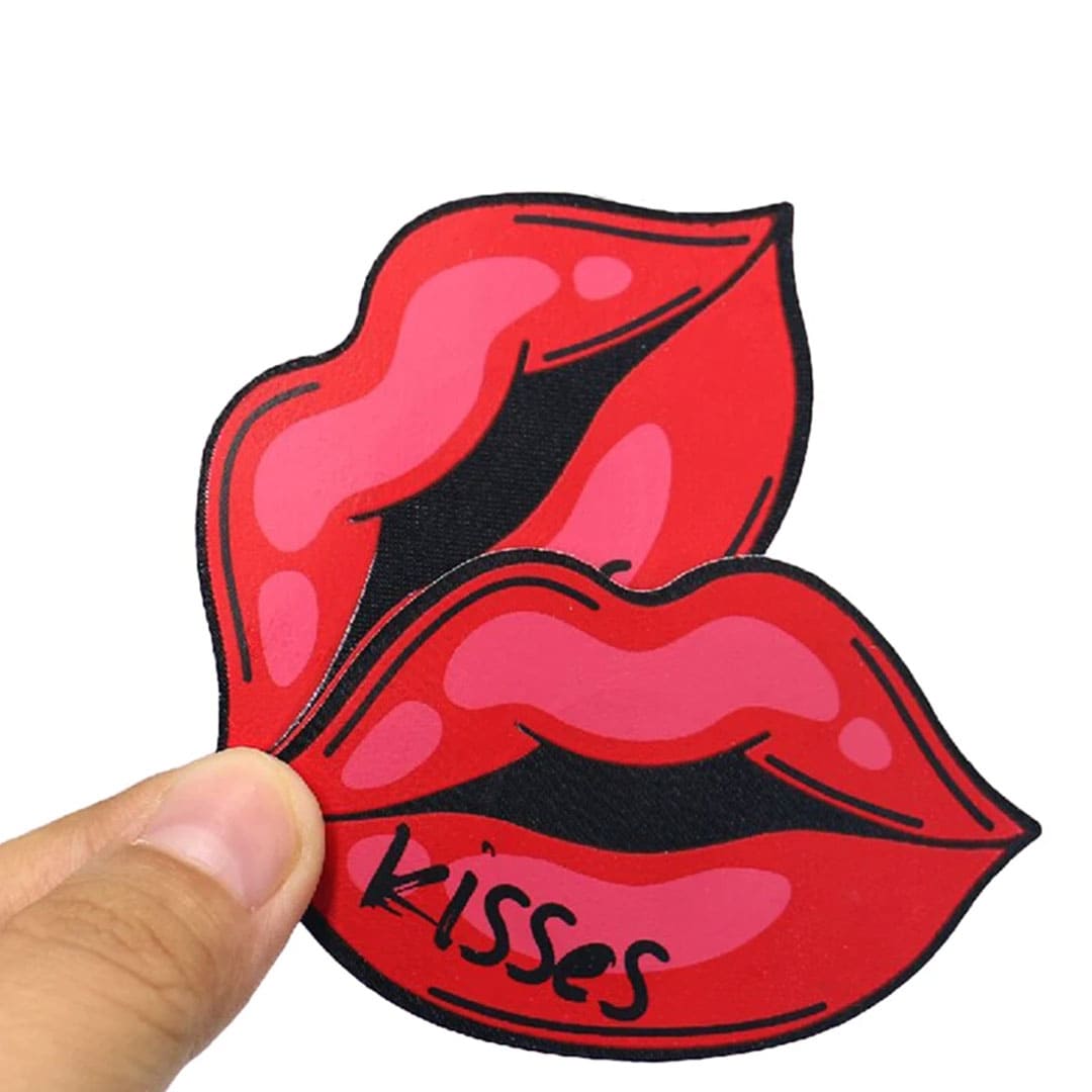 Наклейки виконані у формі губ з декоративним написом “Kiss” і мають липкий шар на внутрішній стороні, що дозволяє надійно закріпити їх на грудях або сосках. Легкі у використанні та ідеальні для романтичних або інтимних моментів, вони додають образу спокуси та інтриги.