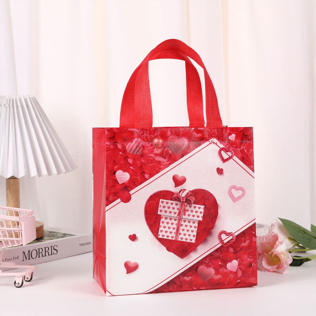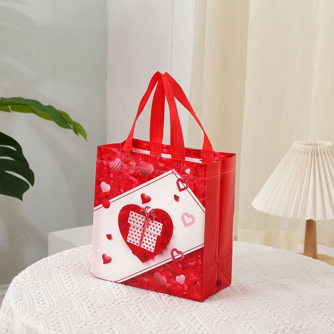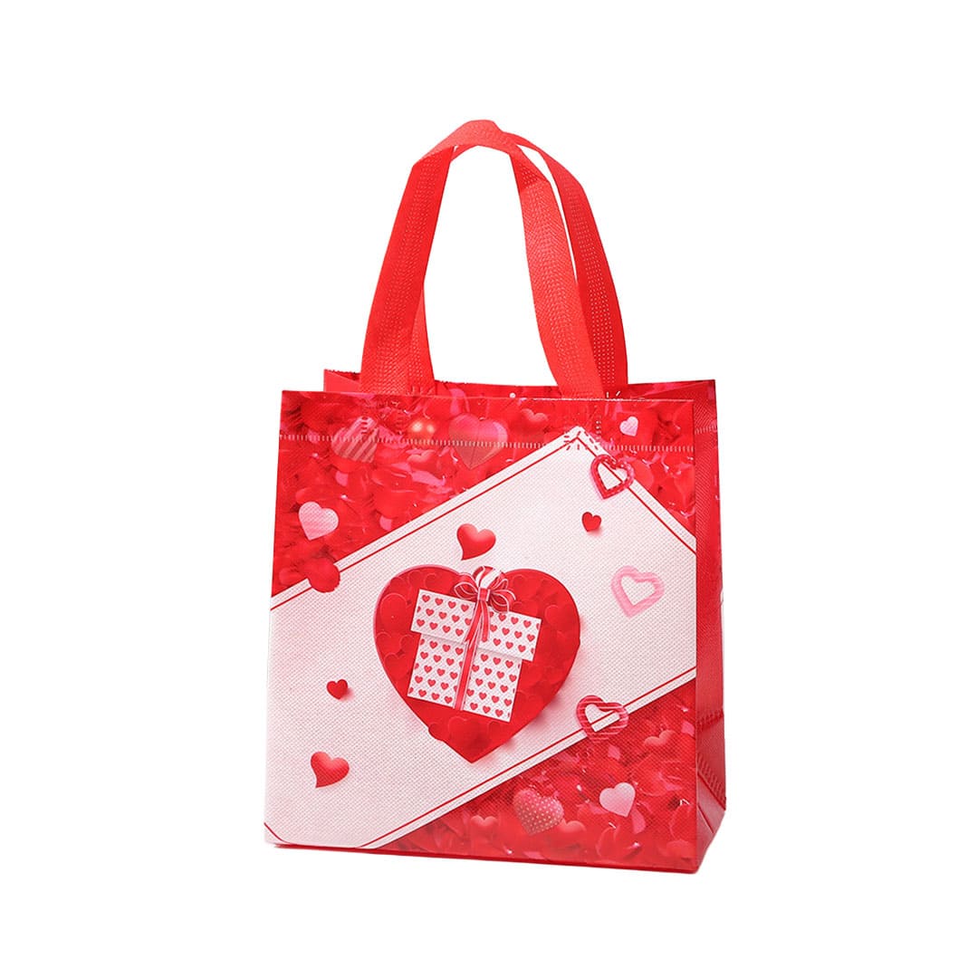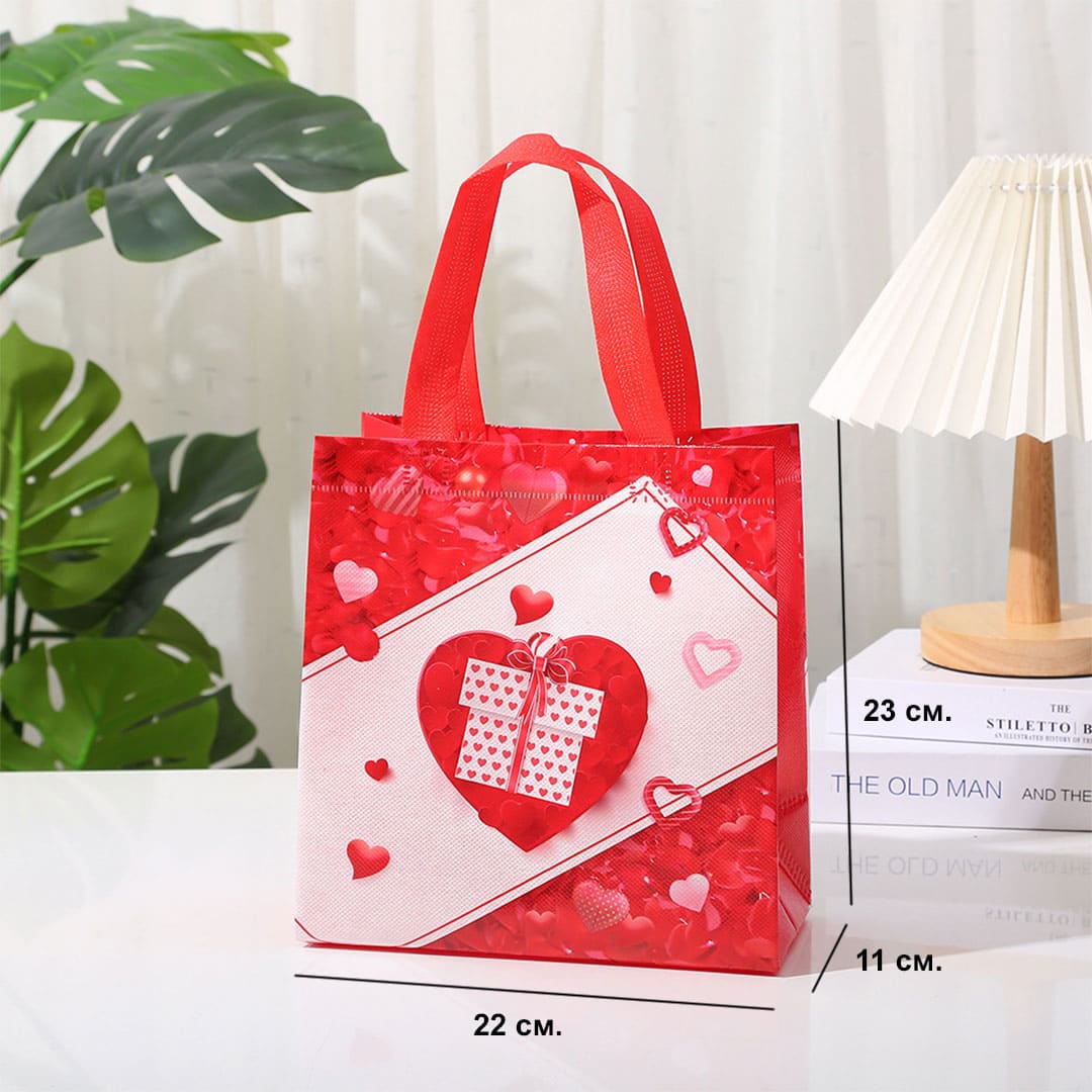 Подарункова ЕкоТорба (шопер) з малюнком серце з подарунком, петлеві ручки та донне розширення, водонепроникна.