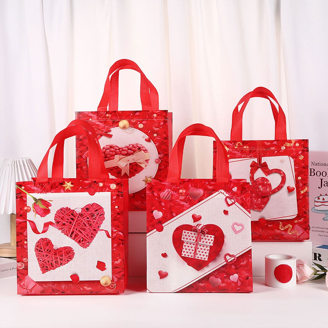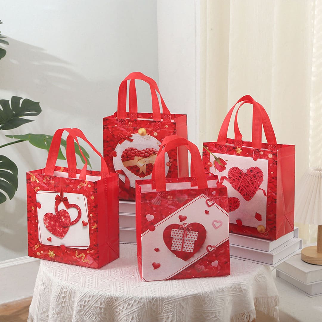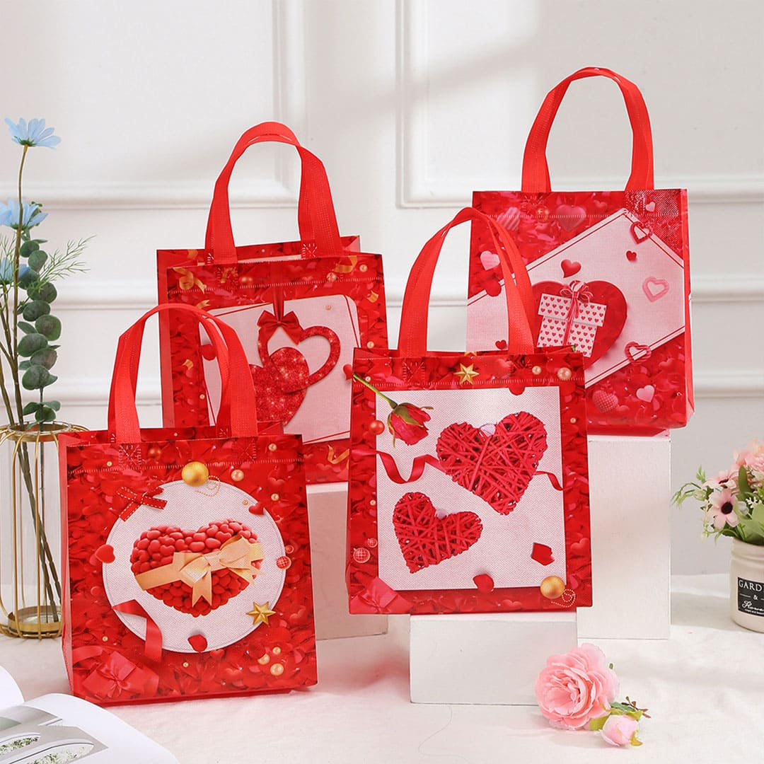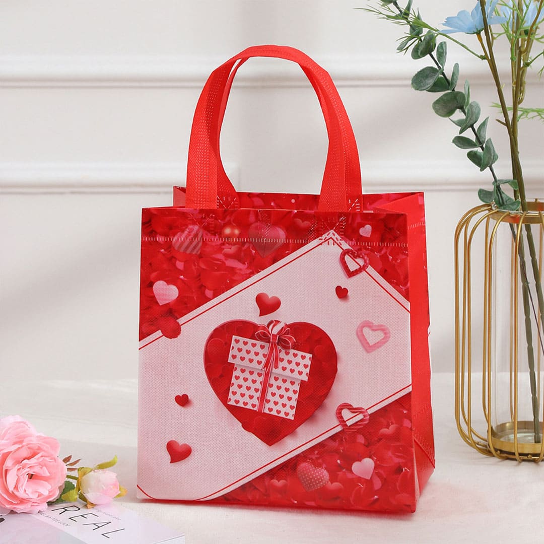 Подарункова ЕкоТорба (шопер) з малюнком серце з подарунком, петлеві ручки та донне розширення, водонепроникна.