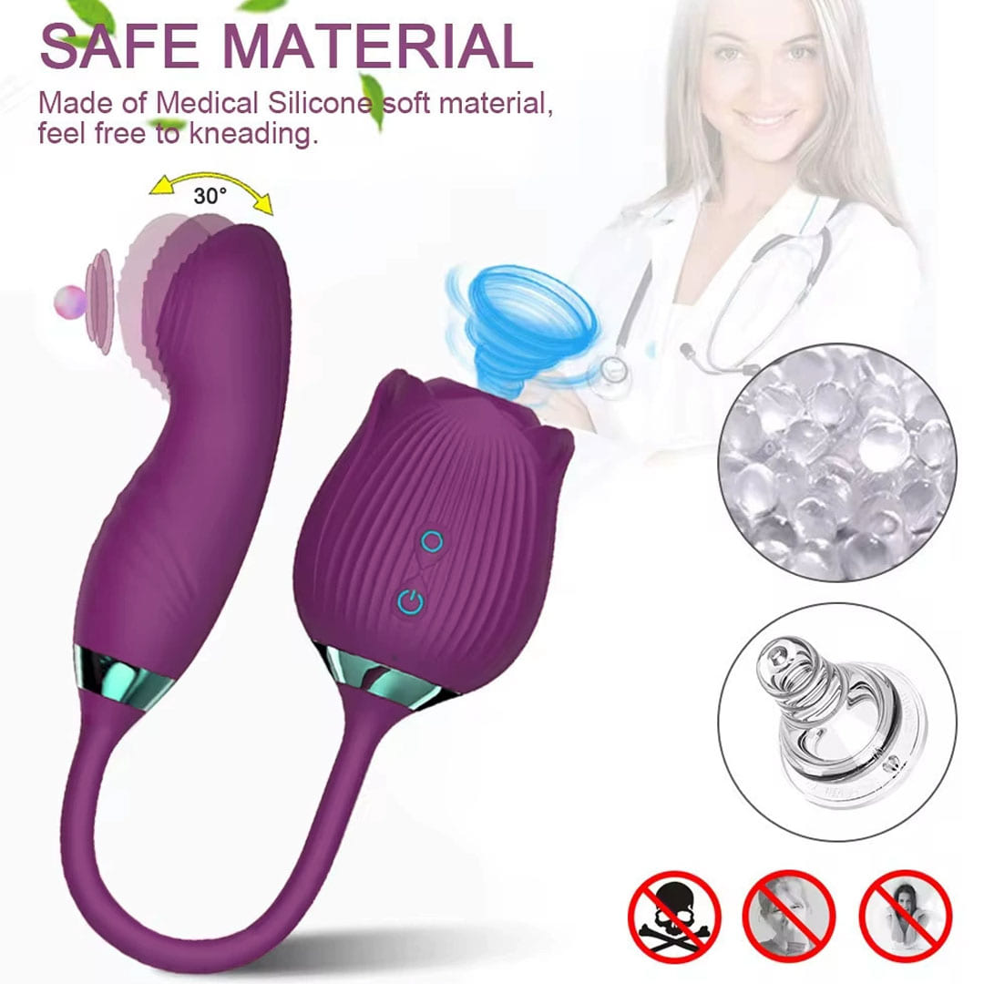 Цей подвійний фіолетовий силіконовий вібратор поєднує вакуумно-хвильову стимуляцію клітора та вібраційну стимуляцію точки G, дозволяючи використовувати обидві функції одночасно або почергово. М’який медичний силікон, ергономічна форма cтворюють ідеальний баланс ніжності й інтенсивності.