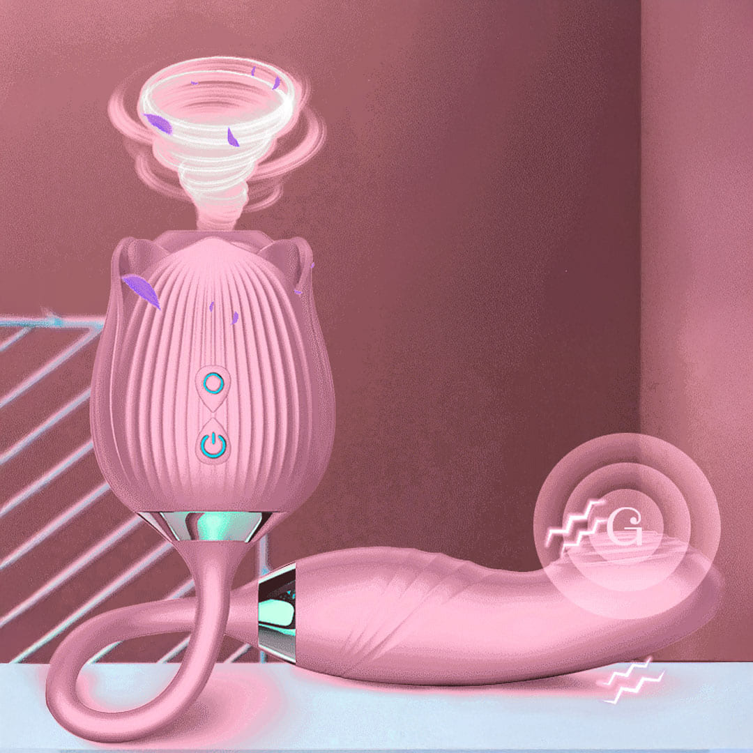 Цей подвійний рожевий силіконовий вібратор поєднує вакуумно-хвильову стимуляцію клітора та вібраційну стимуляцію точки G, дозволяючи використовувати обидві функції одночасно або почергово. М’який медичний силікон, ергономічна форма cтворюють ідеальний баланс ніжності й інтенсивності.