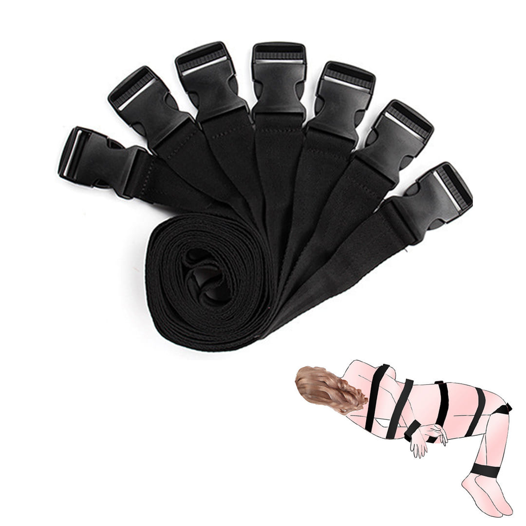 БДСМ-фиксатор для тела с 7 ремешками и пластиковыми застежками.