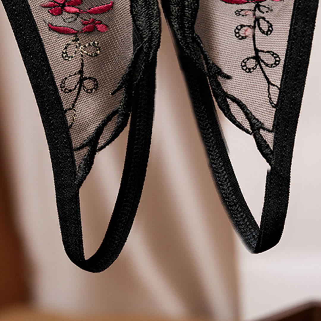 Черные трусики с доступом и прозрачной вставкой с цветочным узором.