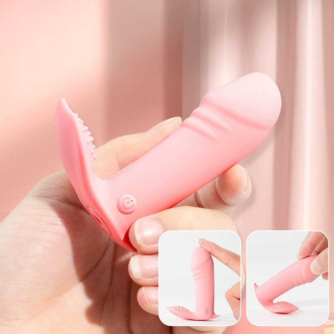 Десяти скоростной силиконовый мини вибратор в трусы анатомической формы с клиторальной накладкой с пузырьками, работает с помощью приложения APP для одновременной вагинальной и клиторальной стимуляции, водонепроницаемый, перезаряжаемый аккумулятор.