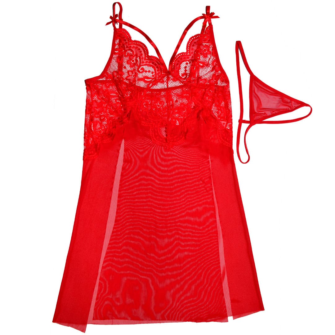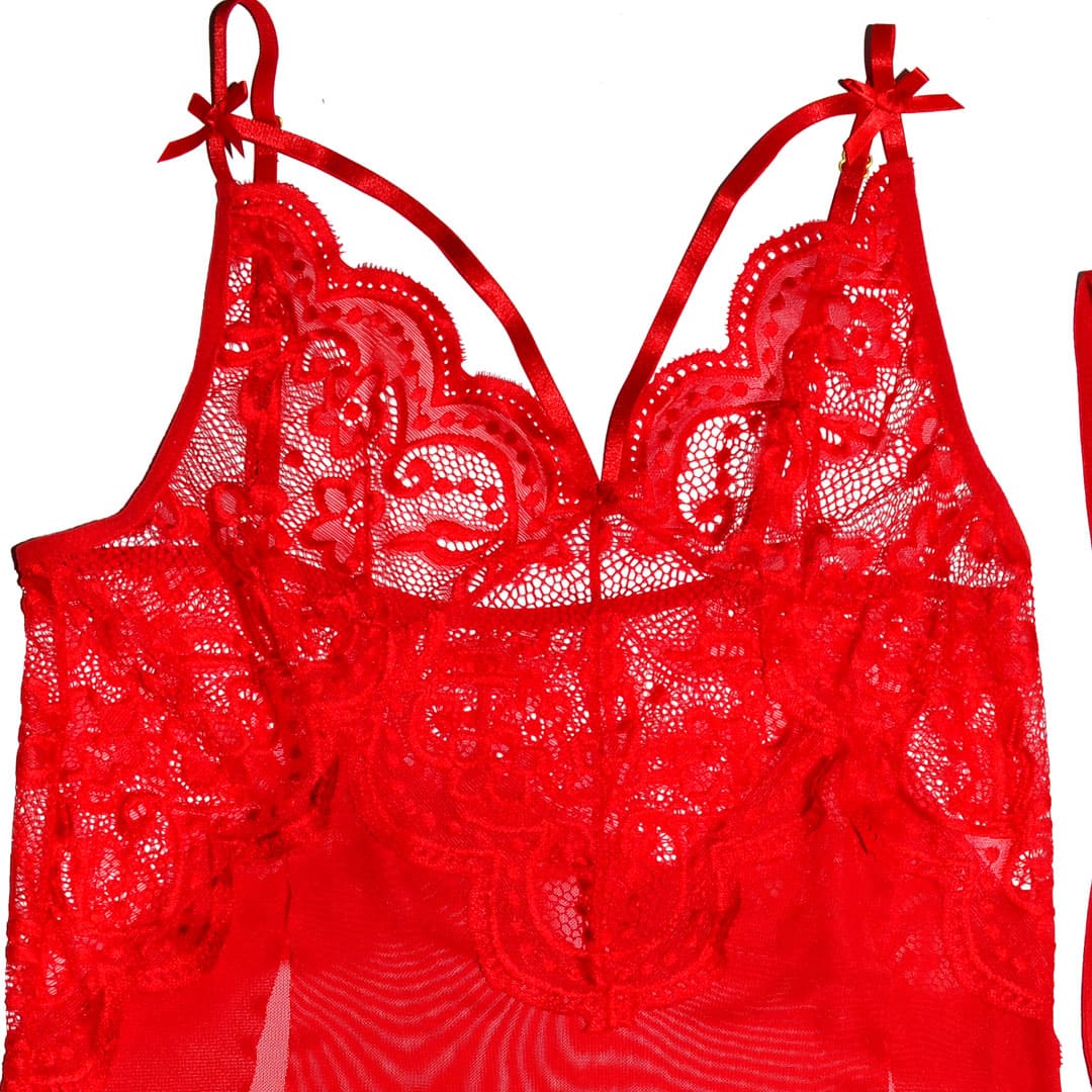Красный эротический комплект (костюм для ролевых игр): пеньюар и трусы.