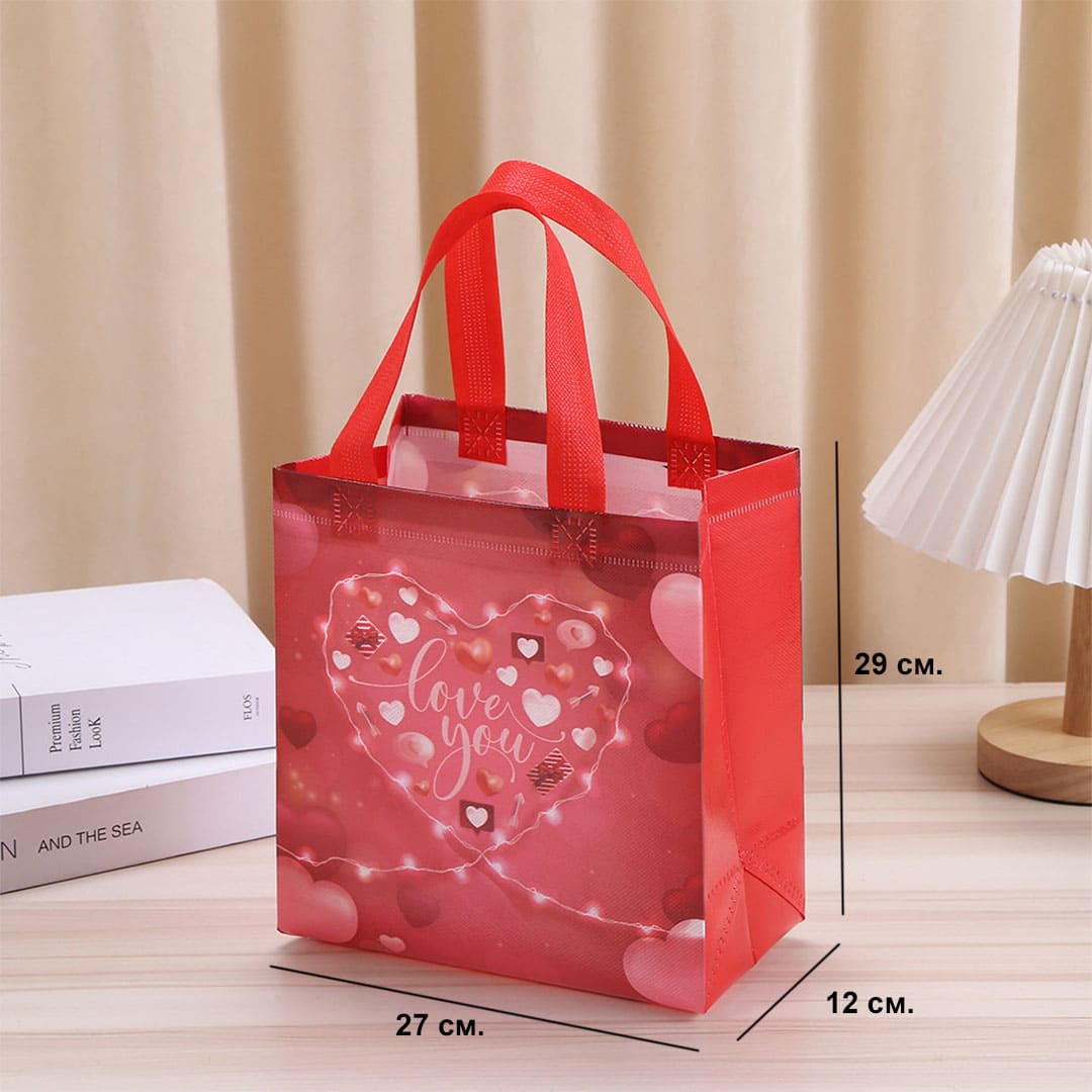 Подарочная ЕкоСумка (шоппер) с надписью "Love you", петлевые ручки и донное расширение, водонепроницаемая.